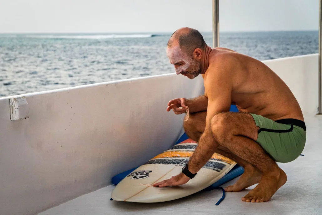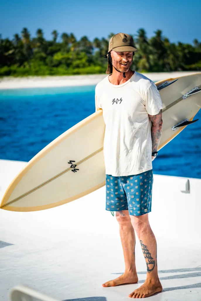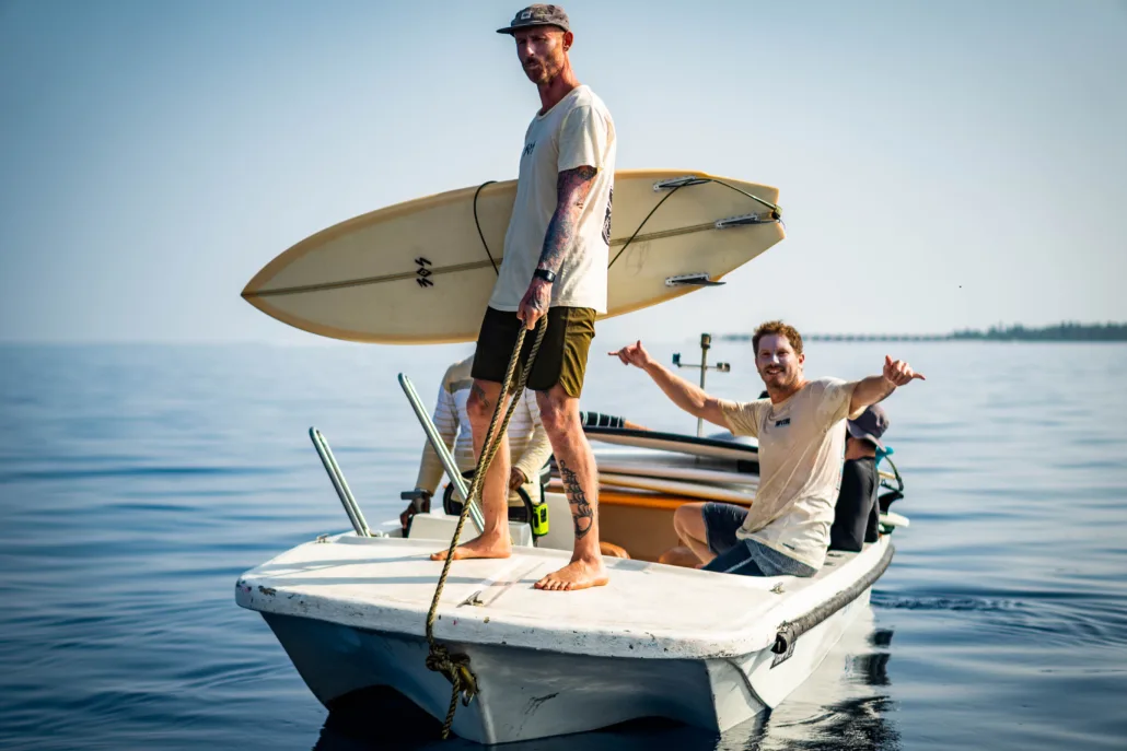 You can’t beat how special the tiny islands are! Going ashore for a sunset beer on a tropical Island no bigger than a football pitch. The snorkelling is also incredible around all the reefs. But I think my favourite moments are post surf beers on the roof, hanging out with everyone and sharing stories from the day.